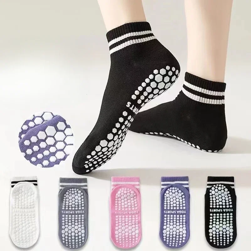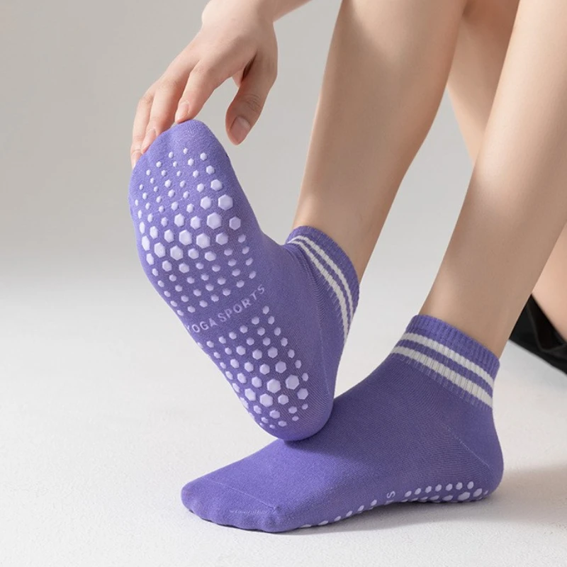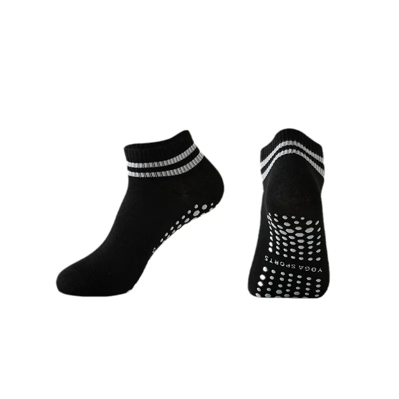 These non-slip grip socks are designed for optimal performance during yoga, Pilates, and other workouts. The double stripe design adds a stylish touch while ensuring a secure fit. Made with breathable and comfortable materials, they keep feet cool and dry during exercise. The anti-slip soles provide excellent traction, preventing slips and injuries on smooth surfaces. Perfect for both men and women, they fit snugly and move naturally with your feet. Lightweight and flexible, they allow for a full range of motion during workouts. Ideal for fitness, ballet, gym sessions, or home exercises. The durable construction ensures long-lasting wear even with frequent use. These socks are easy to clean and maintain, keeping them fresh for every workout. Enhance your performance and stability with these versatile grip socks for active lifestyles.